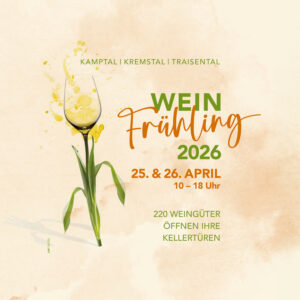 Wir machen auch heuer wieder beim gemeinsamen Weinfrühling von Kremstal, Kamptal und Traisental mit. Zu verkosten sind neben den schlanken Weinen des Jahrgangs 2025 auch Lagenweine aus den letzten Jahrgängen.